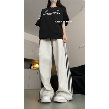 Üç bar Sweatpants kadın 2025 yeni yaz ince kazak pantolon gevşek ve tembel geniş bacak pantolon ince